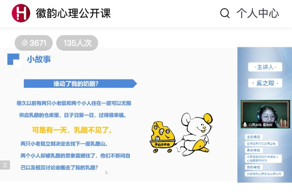 疫情給我們的日常帶來了巨大的不確定,我們誰也不知道未來會(huì)怎樣,而今唯一能做的就是做好當(dāng)下能確定的事情。這一主旨,也貫穿在奚老師課堂的始終。雖然是線上講座,奚老師也讓大家像平常上課一樣,準(zhǔn)備好紙筆等學(xué)習(xí)工具,用儀式來營造熟悉的日常學(xué)習(xí)環(huán)境。奚老師用“誰動(dòng)了我的奶酪”這個(gè)故事開場,在當(dāng)前學(xué)生的生活學(xué)習(xí)變化中將這個(gè)故事重新賦義,并引導(dǎo)大家在變化中關(guān)注和照顧自己的情緒。無論疫情如何變化,學(xué)習(xí)依舊是學(xué)生群體的重要任務(wù)。在講座中,奚老師以專業(yè)心理知識(shí)為基礎(chǔ),從自律環(huán)境的營造、日程清單的制定、快速啟動(dòng)的行動(dòng)機(jī)制、有效的時(shí)間規(guī)劃這四個(gè)方面,幫助大家在居家過程中更加高效地學(xué)習(xí)。