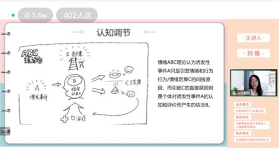 講座伊始,劉老師根據(jù)當下情況,從中學(xué)生生理、認知、情緒、行為、觀念等多方面講解了疫情下常見的心理反應(yīng),同時結(jié)合認知調(diào)節(jié)、情緒調(diào)節(jié)和行為調(diào)節(jié)相關(guān)理論給出行之有效的心理調(diào)適策略,引導(dǎo)學(xué)生規(guī)律作息、管理時間、加強溝通、管理情緒、科學(xué)應(yīng)對,鼓勵學(xué)生選擇適當?shù)姆绞接行п尫徘榫w,緩解因疫情導(dǎo)致的環(huán)境變化帶給人的心理壓力;此外,劉老師通過互動練習(xí),引導(dǎo)學(xué)生思考自身居家學(xué)習(xí)過程中所存在的問題,并嘗試主動尋找解決問題的可能性,提升學(xué)生居家學(xué)習(xí)的主觀能動性,促進學(xué)生靈活應(yīng)對消極應(yīng)激源。